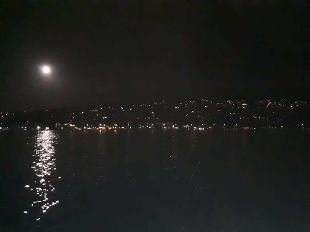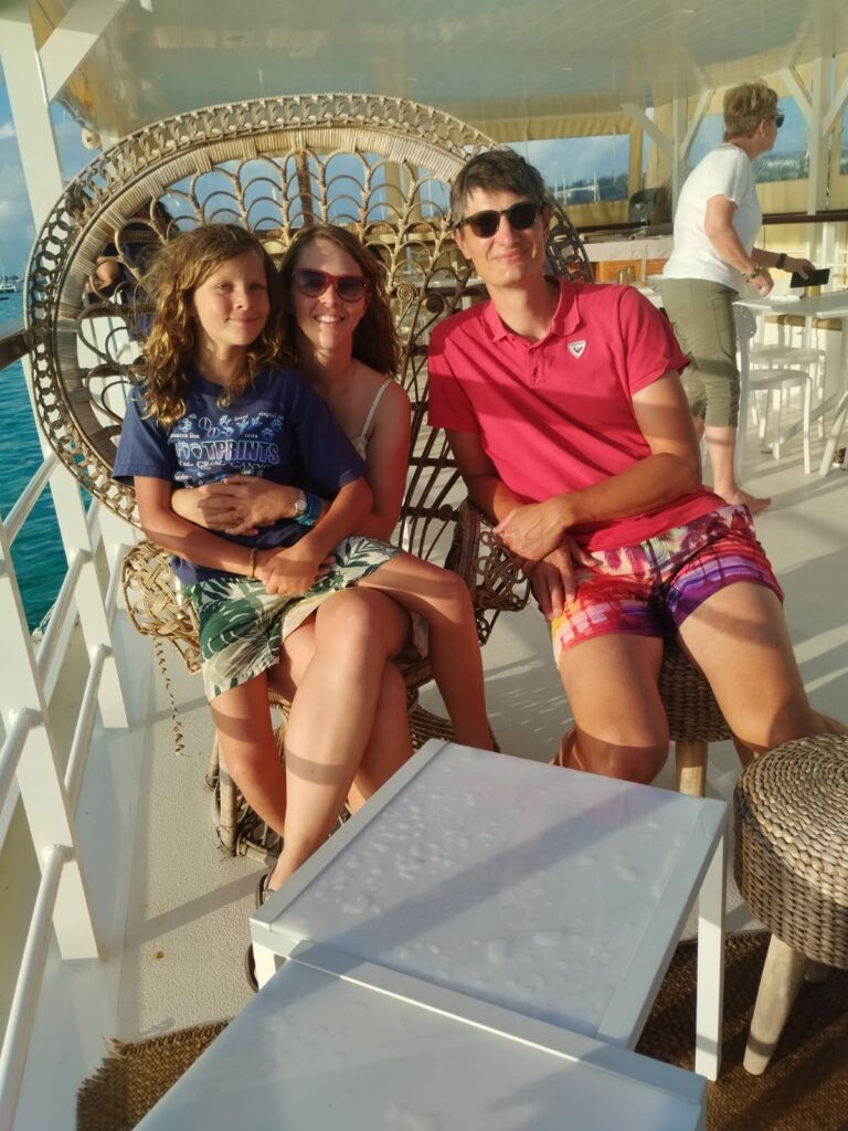 Le soir on teste le restaurant Akua, recommandé par Samuel et Elsa. Ce restaurant est sur un bateau amarré en face de la marina Taina, en bas de chez eux : on le voit depuis leur balcon. C’est un endroit très sympa, accessible uniquement par Zodiac, qui offre un très belle vue sur Tahiti depuis l’eau, en particulier au soleil couchant. Et pour ne rien gâter, il est au milieu de plusieurs patates de corail, ce qui permet de s’ouvrir l’appétit en allant explorer les fonds marins. On en a bien profité, on est désormais paré à partir dans les îles !