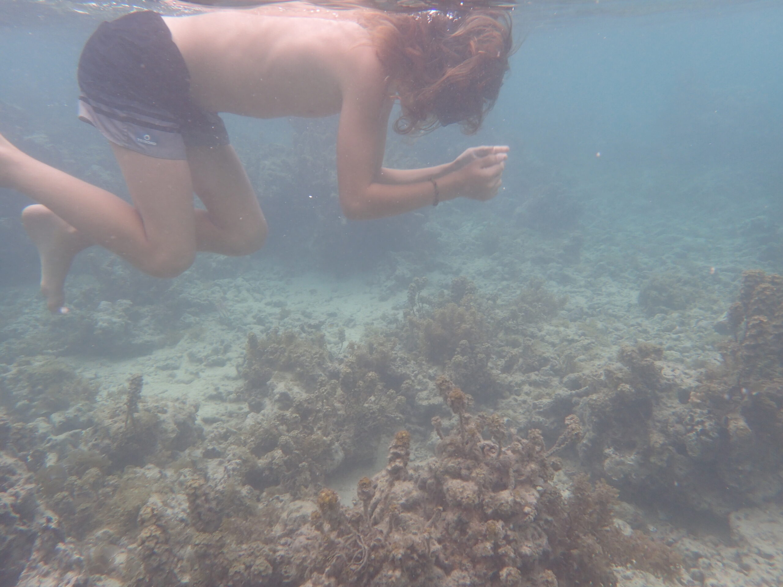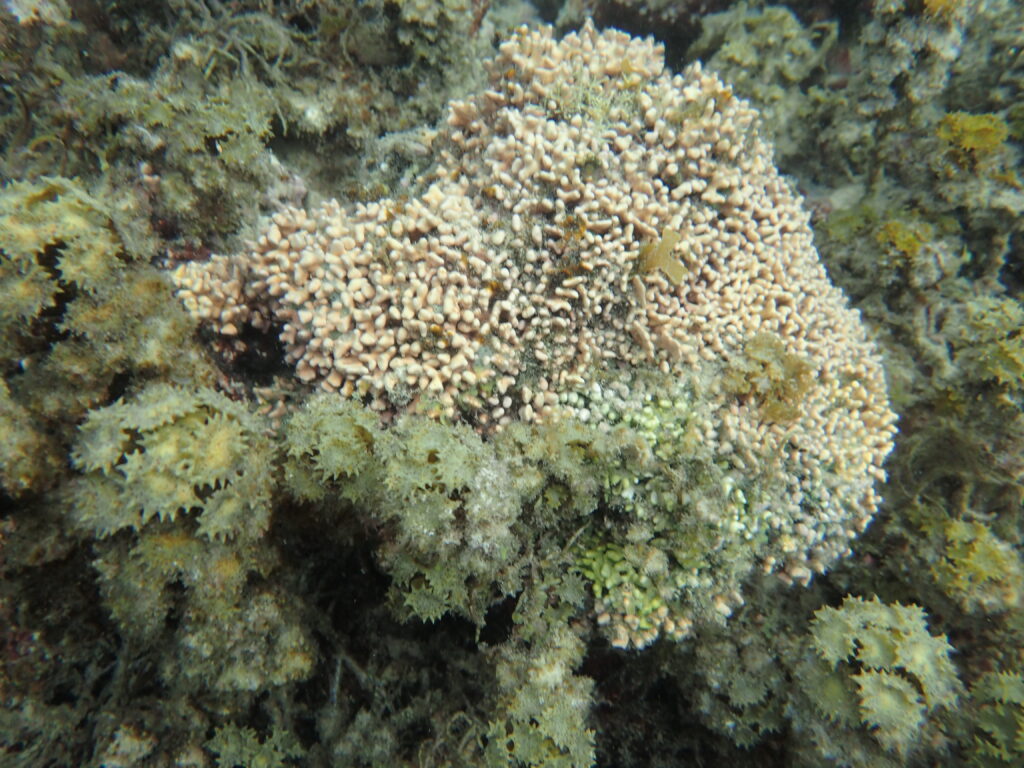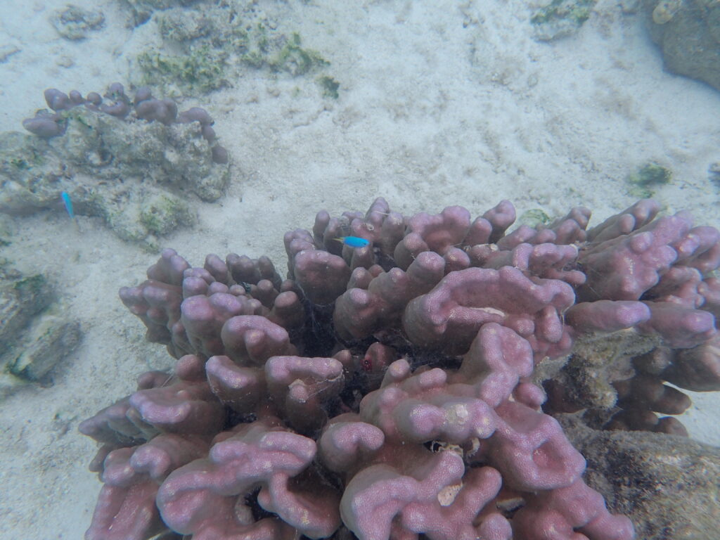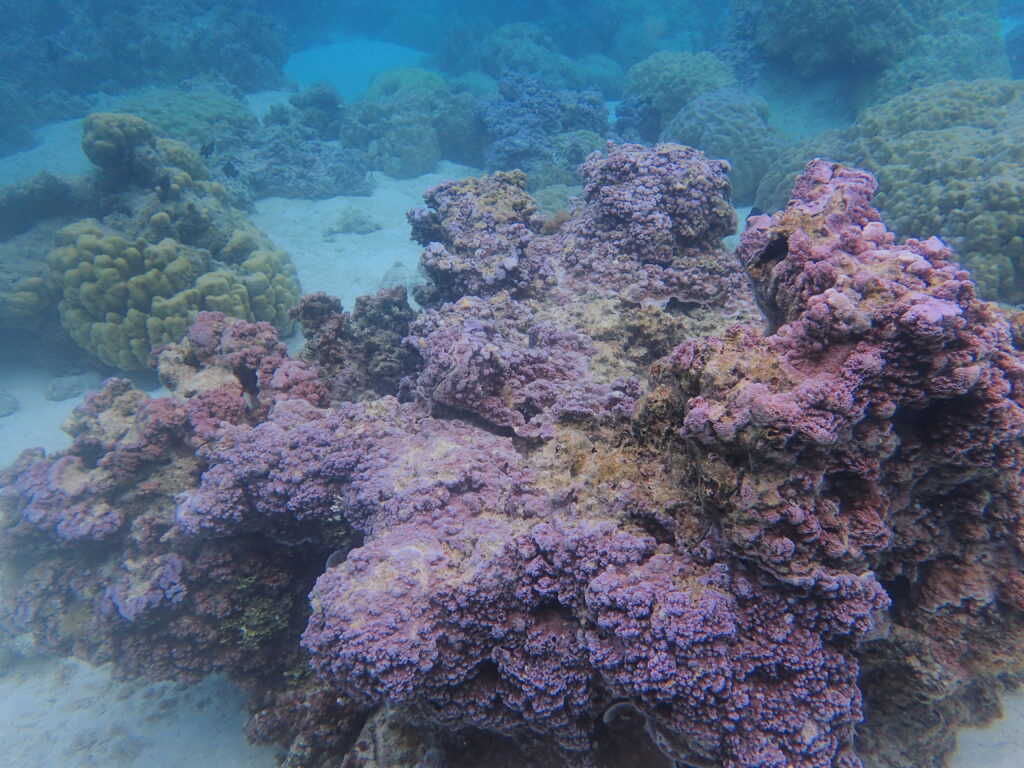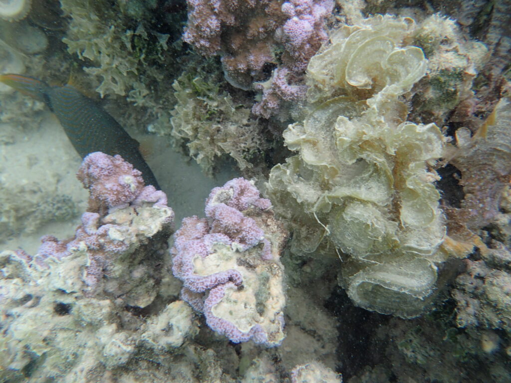 Coraux de différentes formes et couleurs. Apparemment il reste 10% des récifs qui sont constitués de coraux vivants. Sinon il reste la partie végétale du corail ou sa partie minérale (celle qu’on connait, blanches, ramifiée, poreuse).