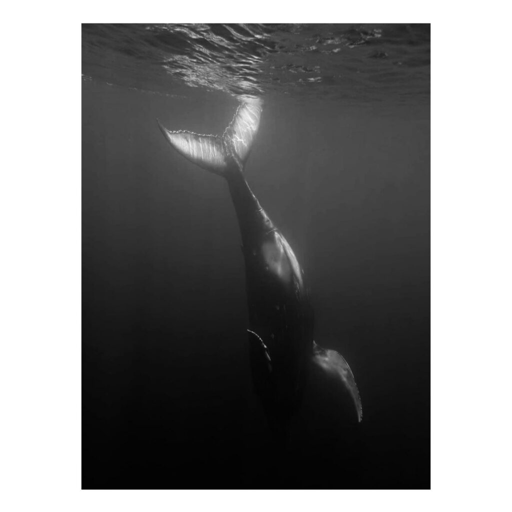 Puis retour tranquille…sauf que nous croisons un nouveau groupe mère-baleineau-escorteur. Un groupe se remet à l’eau, avec Guillaume. Chloé les observera depuis la plateforme du bâteau. Cette fois le baleineau est très joueur, s’approche très près (moins de 2m) du groupe, et sa mère le rejoint, tranquillement et très proche. Belles images dans l’eau, belles images (de nageoires) en surface, c’était un festival.