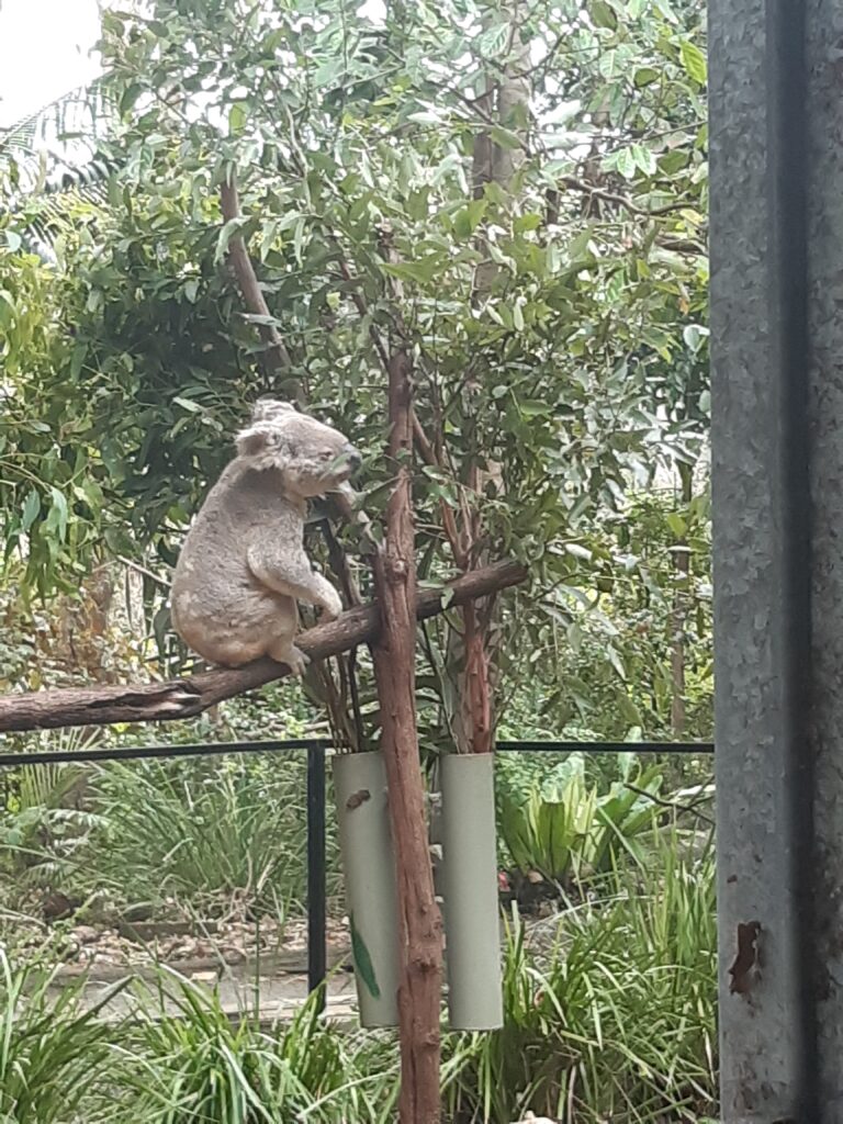 Nous visitons le Currumbin Wildlife Sanctuary, un parc de protection de la vie sauvage australienne, qui contient également un hôpital vétérinaire. Ce parc était très beau, avec quelques spectacles et de nombreux enclos avec, en vedette, le Koala ! Le parc en héberge une soixantaine, ce qui est énorme, en soigne énormément chaque année et participe à des programmes de reproduction et de diversité du patrimoine génétique. Il faut savoir que la population de Koala a chuté drastiquement en 10 ans, a énormémement souffert des feux de forêt de décembre-janvier 2019/2020 à tel point que l’espèce est désormais en danger et pourrait s’éteindre d’ici 2050. On verra aussi des émeus, kangourous (dont des kangourous arboricoles), d’autres marsupiaux mignons, des serpents, des renards volants, de drôles d’oiseaux et un diable de tasmanie déchaîné qui faisait le tour de son enclos au galop (on imagine ce qui a pu inspirer le personnage de Taz !). C’était une très belle journée et un magnifique souvenir.
