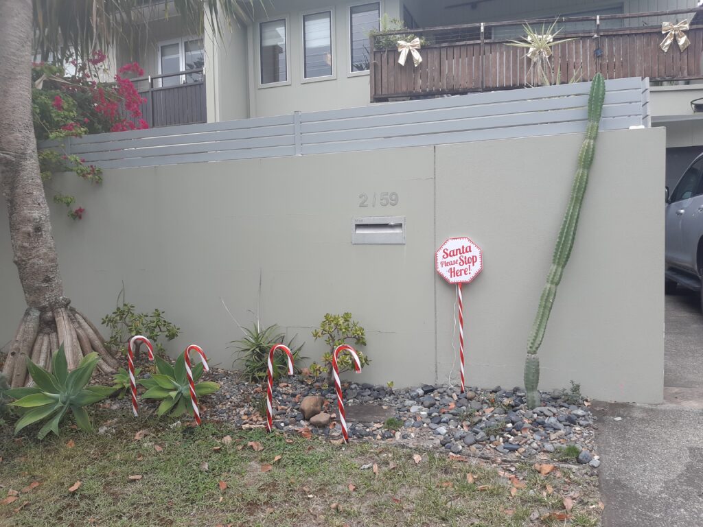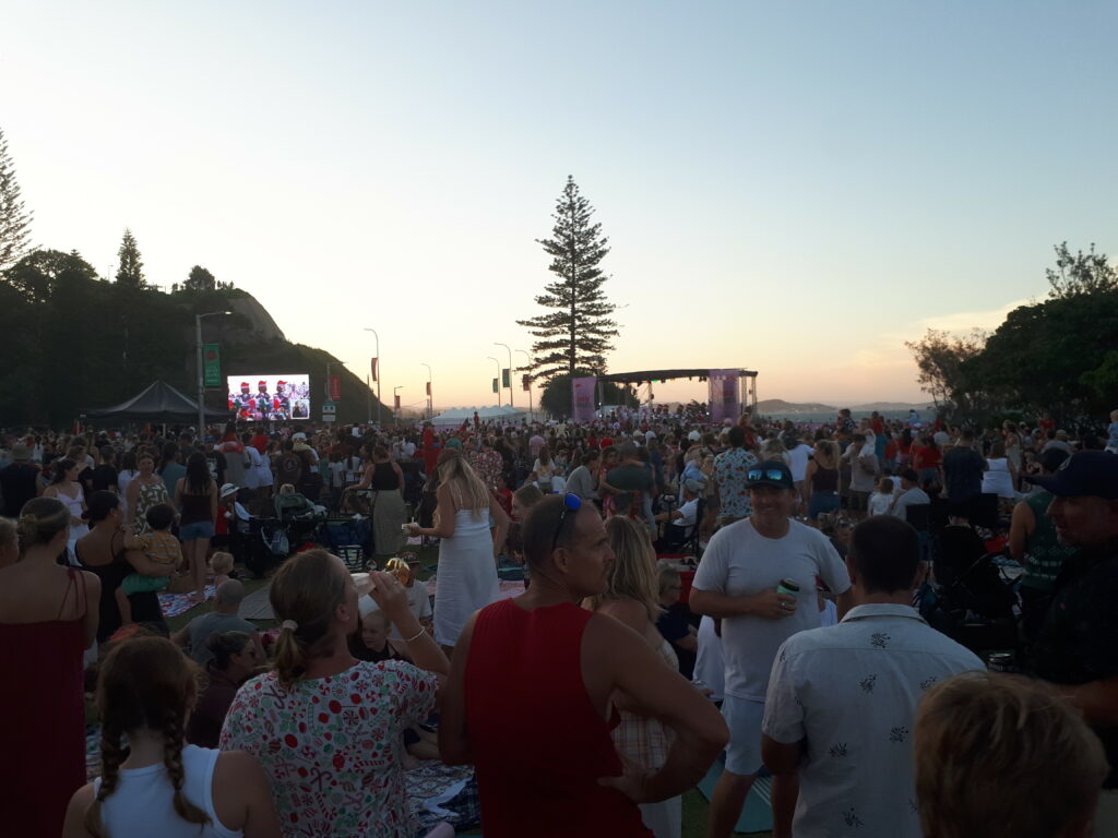 Fun fact : pas de cheminées sur la Gold Coast, mais le Père Noël arrive d’une autre façon : à la suite d’un concert de chants de Noël, il saute en parachute, au milieu d’une dizaine de lutins, qui atterrissent à tour de rôle sur la plage, le jeu consistant à deviner de loin quel parachutiste est Santa Claus !