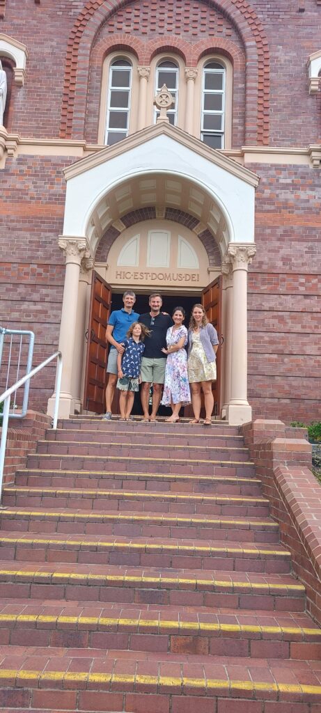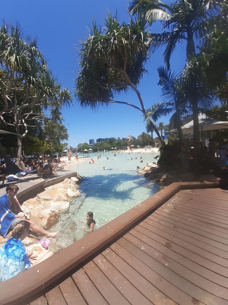 Nous visitons Brisbane sur une journée, en flanant le long de la rivière qui traverse la ville, nous prenons une patisserie dans une très bonne patisserie française (qui fournira aussi la pâte feuilletée pour le repas de Noël), on découvre l’église du mariage de Jayahna et Pierre-Louis (pour le centenaire de l’église…difficile d’imaginer une église de seulement 100 ans en France !), le community market hebdomadaire pour s’approvisionner et prendre un café, ou encore un excellent glacier italien, Ottimo. On se laisse aussi prendre à prendre le « breakfast » dans un café comme les australiens (soit une espèce de brunch qui se prend entre 7h et 12h, accompagné d’un café ou d’un smoothie, avant ou après être allés à la plage et/ou surfer) où l’avocado toast domine. On tente aussi les « spécialités » locales : biscuits au chocolat Tim-Tam (on recommande !!) et vegemite au petit dej (sur une couche de beurre et recouvert par de l’avocat, de la tomate et même du fromage). Le tout rythmé par les 2-3 sessions de beachvolley hebdomadaire avec les amis de Pierre-Louis.