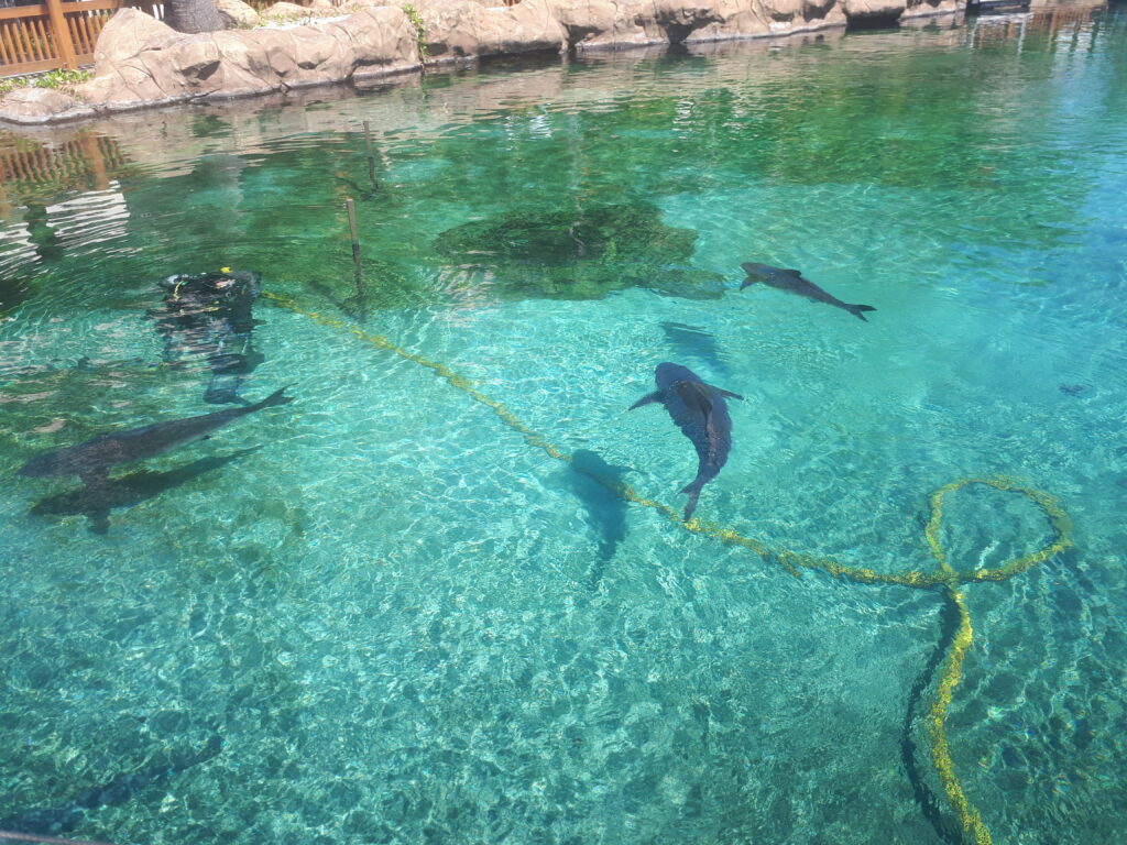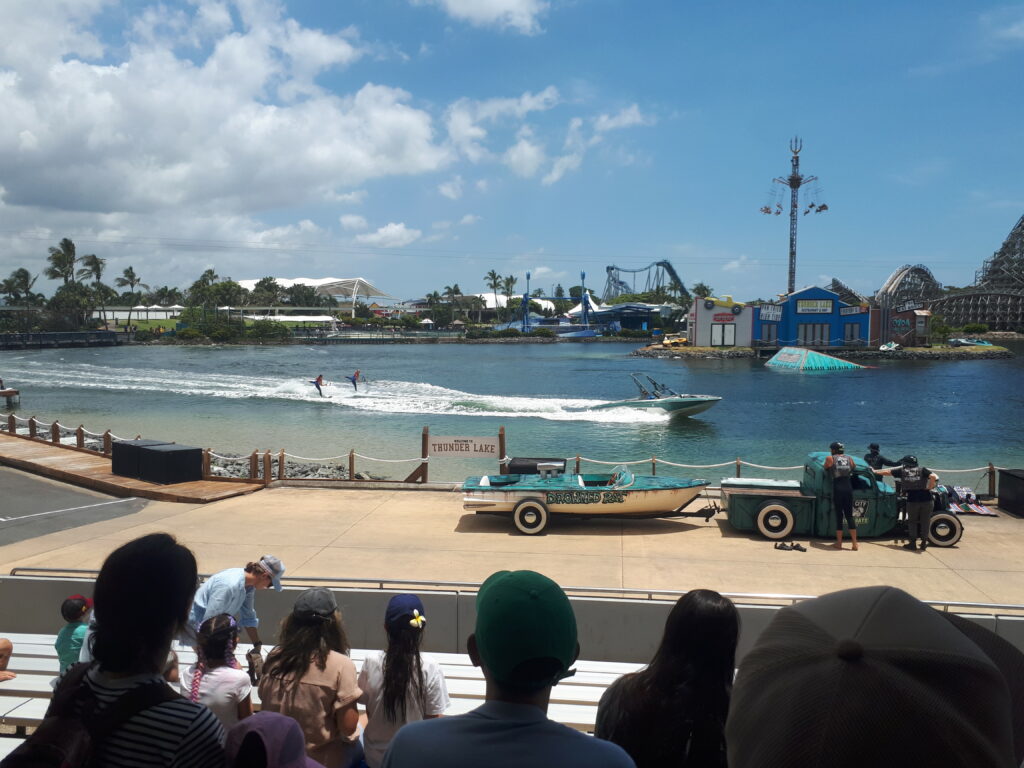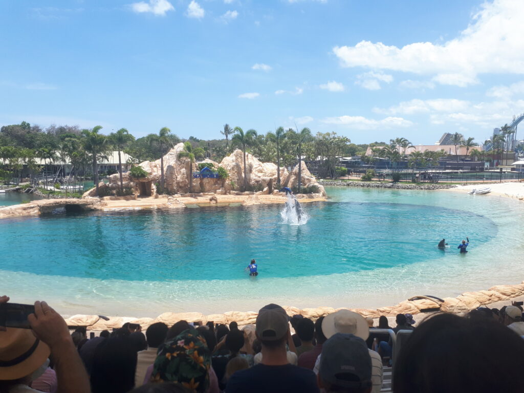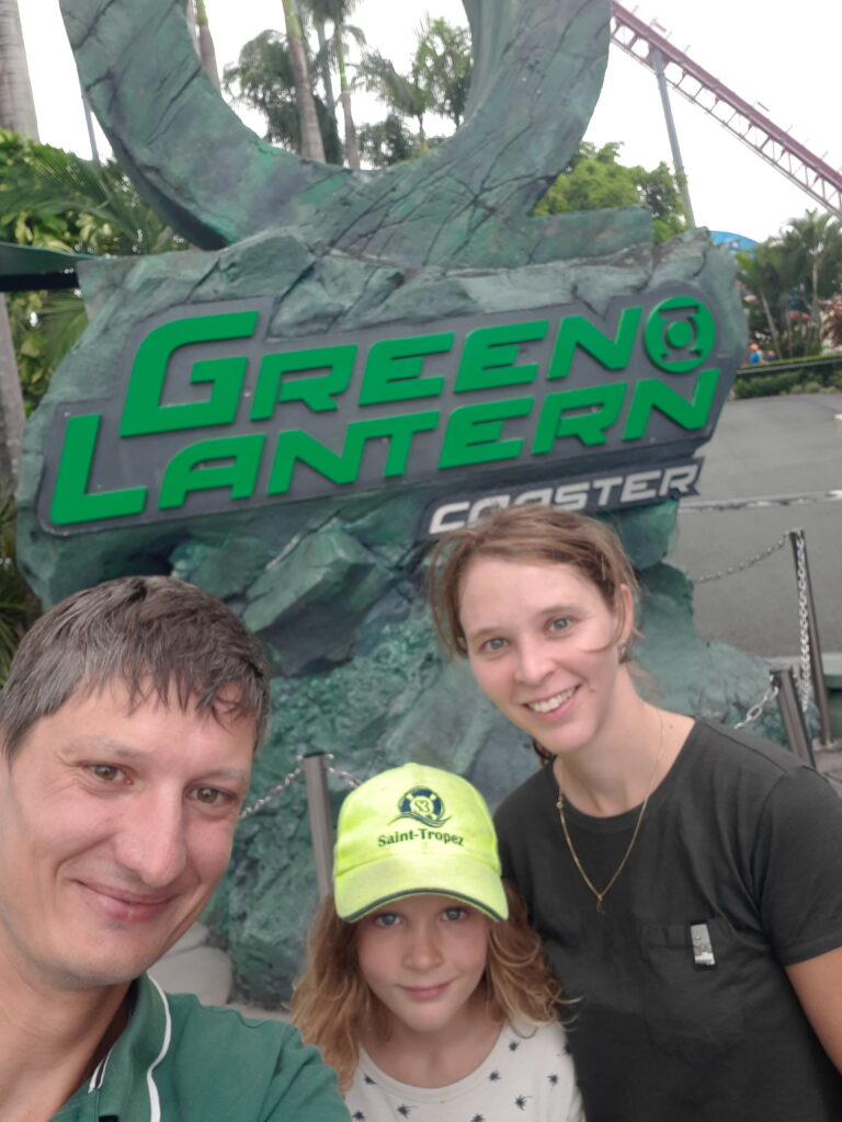 La Gold Coast comprend également une série de parcs d’attractions regroupés au même endroit, avec des tarifs très avantageux à l’achat d’un pass annuel (moins cher que 2 entrées journalières). Nous expérimenterons donc 3 parcs, à la grande joie de Maël : Wet & Wild, un parc aquatique ; Warner Bros Movie World, le « Disneyland » de l’univers Warners (Héros DC Comics, Looney toons, Wicked ou encore Scoobydoo); SeaWorld, une sorte de Marineland renforcé par des attractions et encore Wild paradise, plutôt typé Zoo et que nous n’avons pas fréquenté. C’était sympa dans l’ensemble, de bonnes attractions, parfois un peu trop d’attente (et parfois non). Le SeaWorld était plus dérangeant avec ses manchots enfermés dans un petit enclos et son ours polaire canadien sous 30°C.