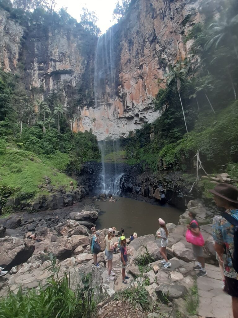 Puis la semaine de Noël arrive : Antoine, Linda et leurs enfants, des cousins de Guillaume installés à Sydney depuis plus de 15 ans, nous rejoignent pour 5 jours. On prépare le repas de Noël, on profite un peu de la plage même si la météo est devenue capricieuse, avec « showers » régulières (des pluies fortes pendant 20 minutes) et orages. On va visiter des chutes d’eau sur le parc national de Springbrook et on teste un délicieux fish & chips, une des spécialités locales.