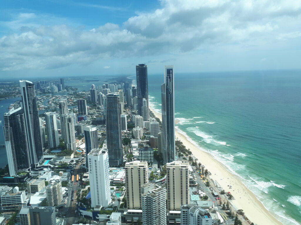 Enfin on visite (rapidement) la ville de Surfers Paradise, une ville hérissée de gratte-ciels qui contient le plus haut building d’Australie (~320m) dont la skyline se distingue très nettement depuis Coolangatta. Ce n’était pas au programme mais Chloé s’est bloquée la machoîre mi-décembre (en baillant…) et consulte donc une physiothérapiste spécialisée, qui se situe à proximité. L’occasion de découvrir Surfers Paradise, mais aussi de pousser jusqu’à SeaWorld, qui n’était pas planifié au début.