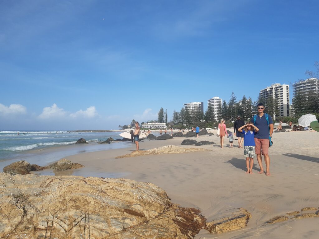 Nous sommes accueillis par Pierre-Louis qui nous emmène à Coolangatta, la ville où il vit depuis 3 ans avec Jayahna et où ils viennent d’emménager dans leur appartement récemment acquis. Nous y dormirons même avant eux ! Coolangatta est située sur la Gold coast, au bord de l’océan pacifique et en face de Surfers’ Paradise. On est donc dans la Mecque du surf : 3 spots dans la ville, de débutant à expert mondial, des vagues tout le temps et une cinquantaine de personnes à l’eau pour surfer à chaque fois qu’on est allés se baigner.