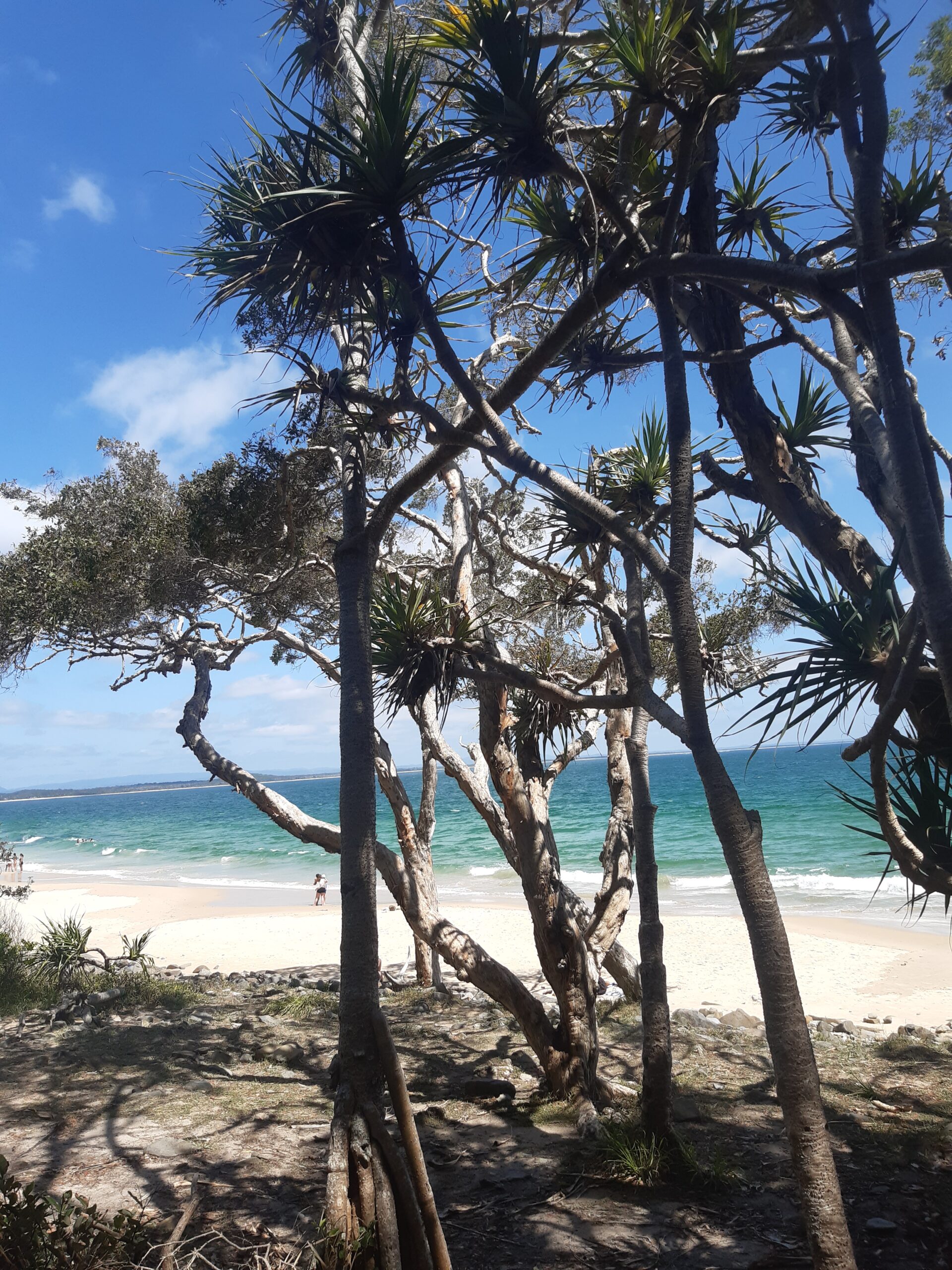 C’est parti pour notre première étape, le parc national de Noosa, un peu au nord de Brisbane. Après avoir récupéré le van et l’avoir chargé, nous partons sur les longues routes australienne. Et une heure après le départ, on se prend une belle tempête, avec orage, pluie et grêlons ! Pas de dégât pour nous, un peu plus pour les deux premiers campings où l’on va dormir : plus d’électricité dans le premier (heureusement, ils avaient une gazinière pour les repas), plus d’électricité ni de douche dans le deuxième ! Ce sera le seul vrai mauvais temps qu’on aura des deux semaines, mais c’était impressionnant.