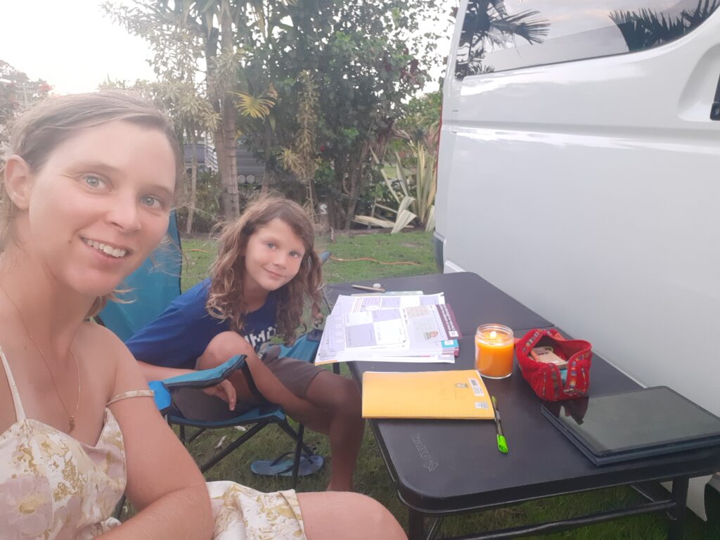 Après une dernière nuit en camping entre Maryborough et la ville de Sandstone, on termine notre périple dans un beau camping avec piscine, toboggan, trampoline et mini golf, histoire de passer un beau week-end après ces deux semaines bien remplies. On aura réussi à faire nos 2000 km, tout en faisant l’école, parfois même directement dans le van !