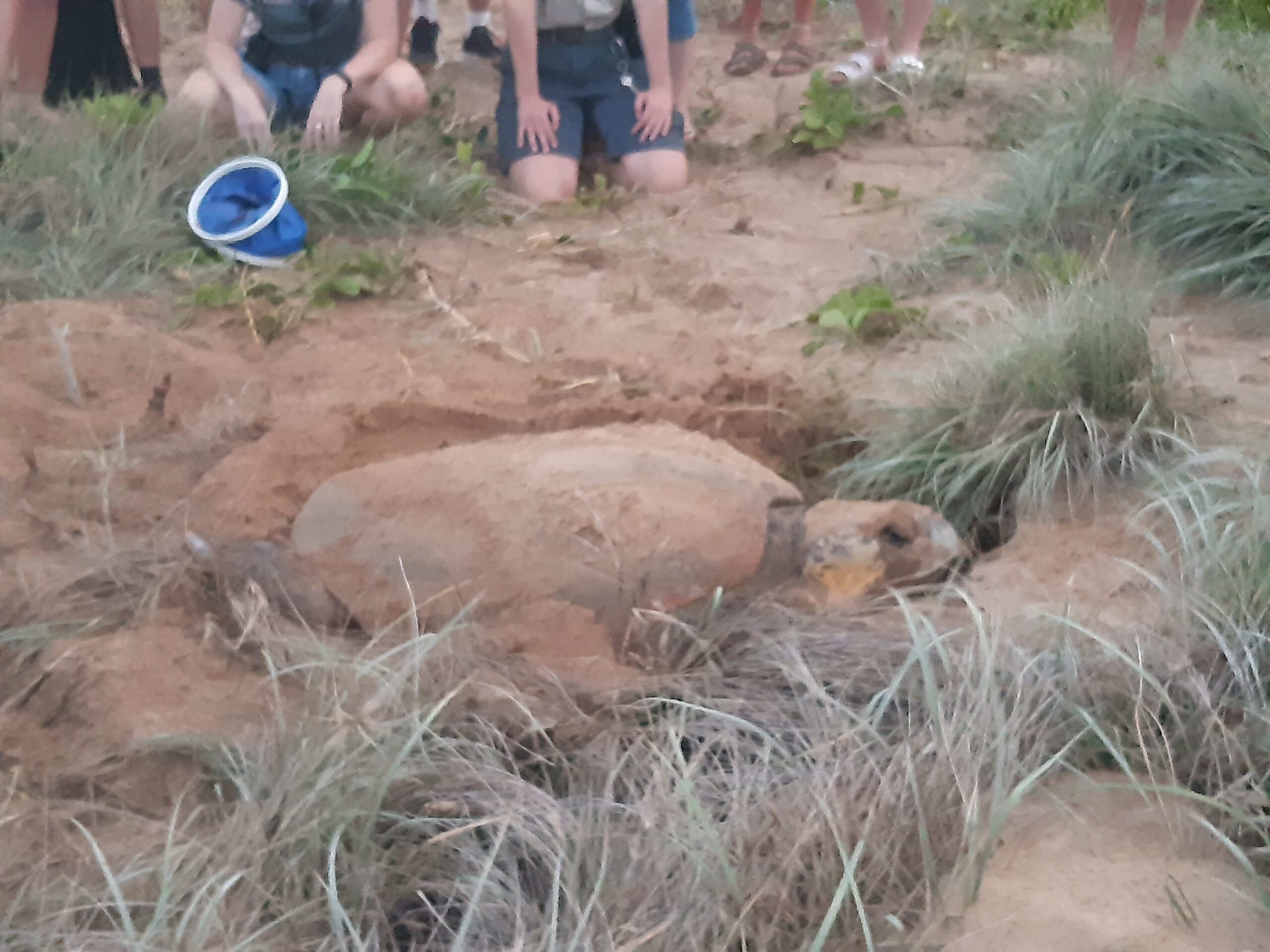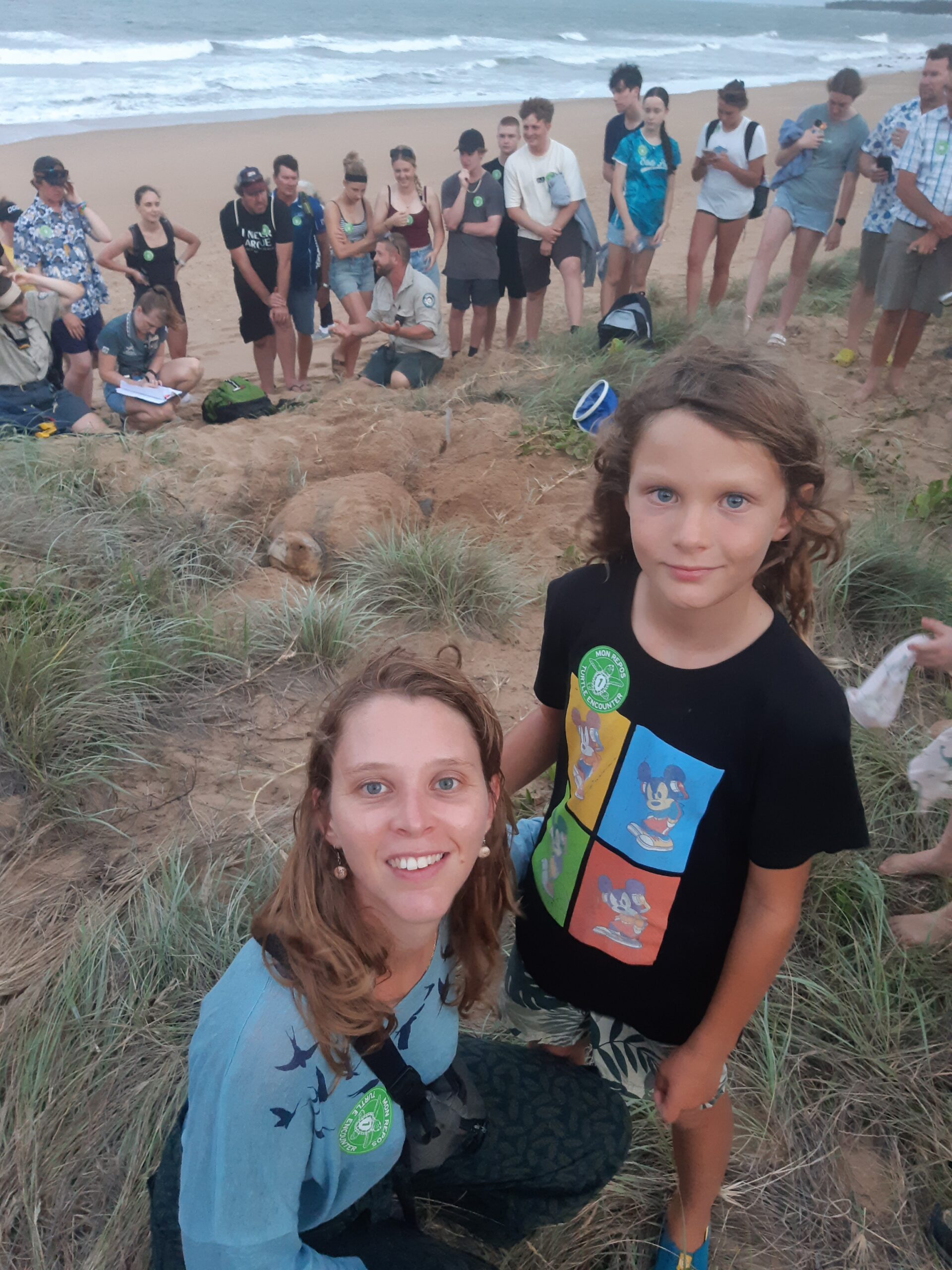 On termine notre journée par une activité incroyable spécifique de la ville : l’observation de la ponte des tortues marines. Bundaberg est une région appréciée par les tortues pour venir pondre, et une association accompagnée par des rangers propose de venir observer les tortues à ce moment là. On a donc rendez-vous à 18h au musée sanctuaire (très bien fait également), pour attendre le bon moment. Sur le principe, des tortues peuvent venir pondre sur la plage à côté du musée n’importe quand entre 18h et minuit (et après, mais les visites s’arrêtent), et dès qu’une torute est repérée, les rangers et les bénévoles emmènent un groupe de personnes pour l’observation. Coup de chance pour nous, la première tortue est repérée à 18h15, et nous voilà donc partis sur la plage. On trouve la tortue déjà à moitié enfoui dans le sable, en train de pondre, et on va assister à la fin de cette ponte, au travail de la tortue pour recouvrir ses oeufs de sables, et à son retour dans l’océen (ce qui prendra en tout pas loin de 2h, avec la nuit qui tombe entre-temps). Une fois la tortue partie, les rangers vont déterrer ses oeufs, les compter (149 ici), creuser un trou plus profond pour qu’ils soient plus en sécurité et reboucher ! Ils font ça pour chaque tortue repérée (parfois ils déplacent même le nid, s’il est trop près de l’eau ou trop exposé au soleil), ce qui permet de sauver des milliers de bébés tortues chaque année !