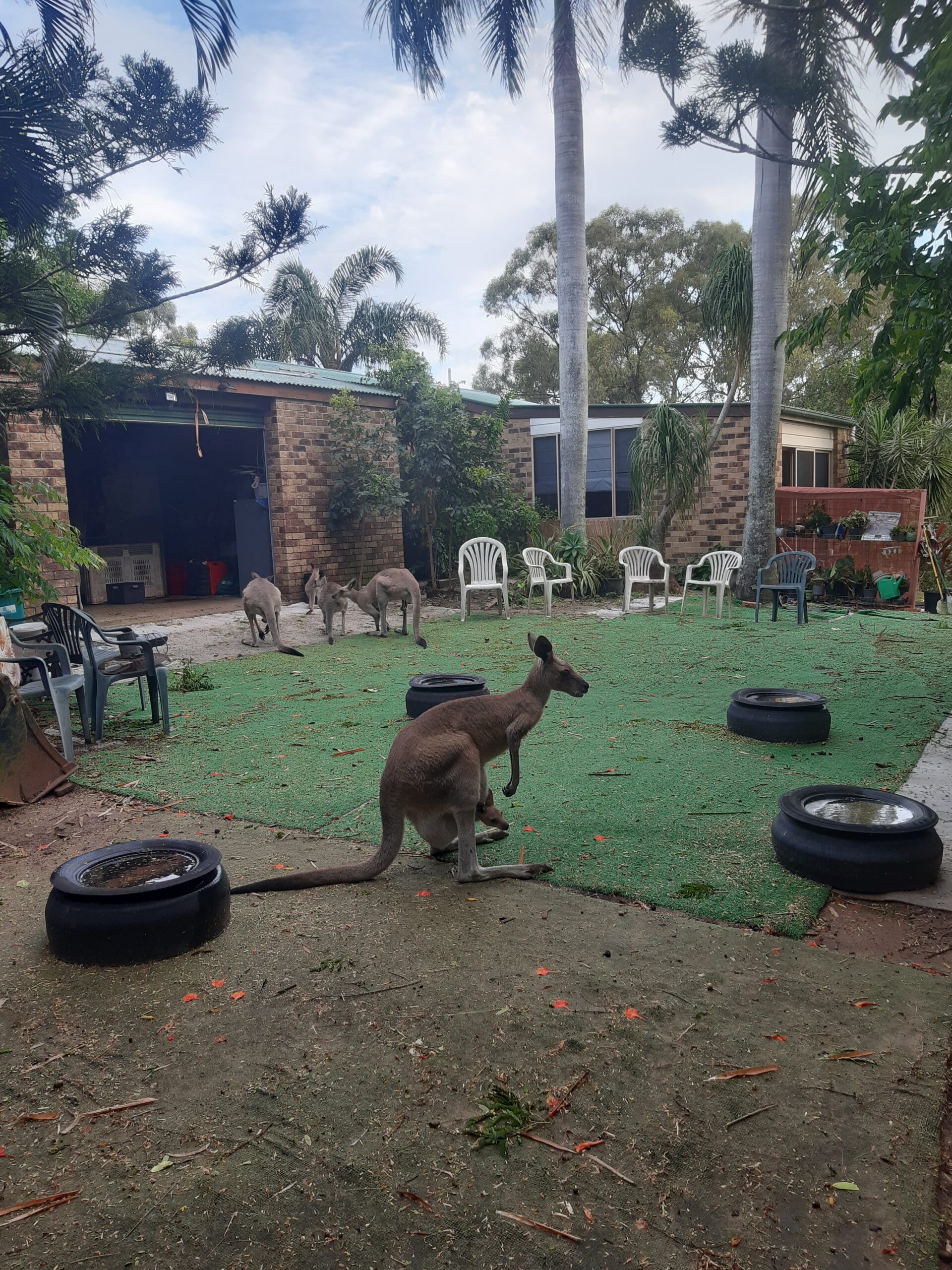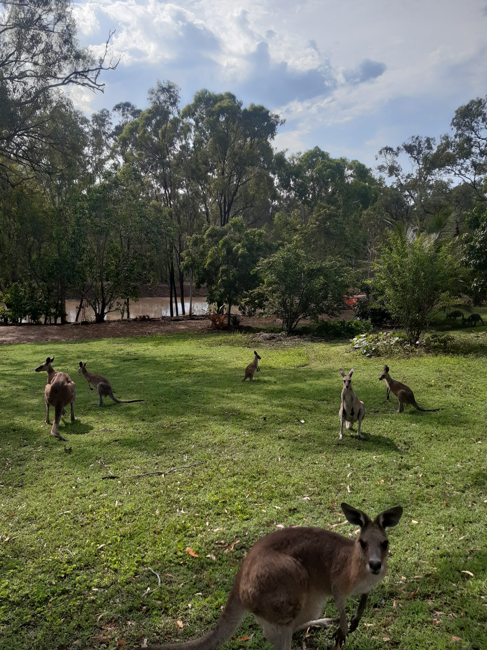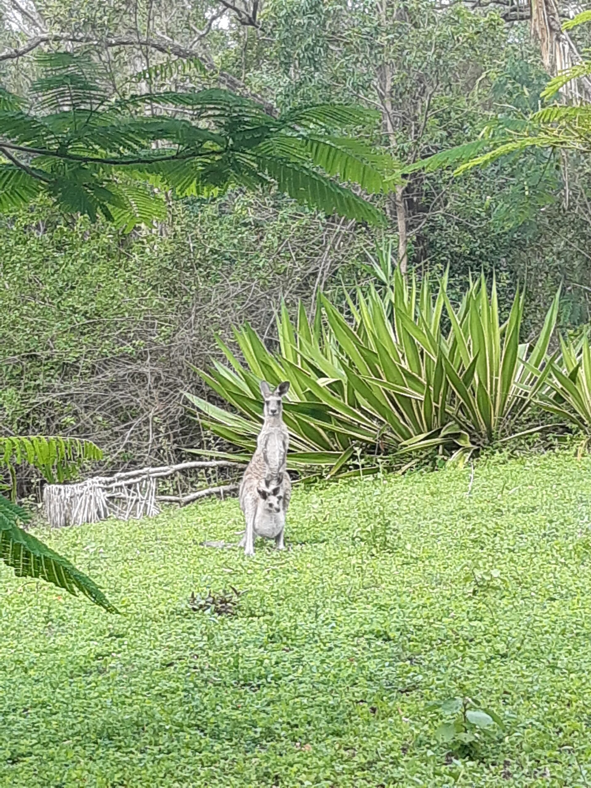 De là, on part pour un camping recommandé par Pierre-Louis, où sont déjà passés plusieurs membres de nos familles : le sanctuaire des kangourous d’Agnes Water. C’est un grand parc où Garry, le propriétaire, recueille des kangourous blessés et les soigne. Les kangourous se baladent en liberté, et on apprend que ce sont des animaux qui ne transpirent pas (ils ne sentent donc pas mauvais) et ne sont quasiment jamais malades. On va avoir l’occasion de les caresser, de leur gratter la tête et de leur donner des patates douces à manger (ils en raffolent).