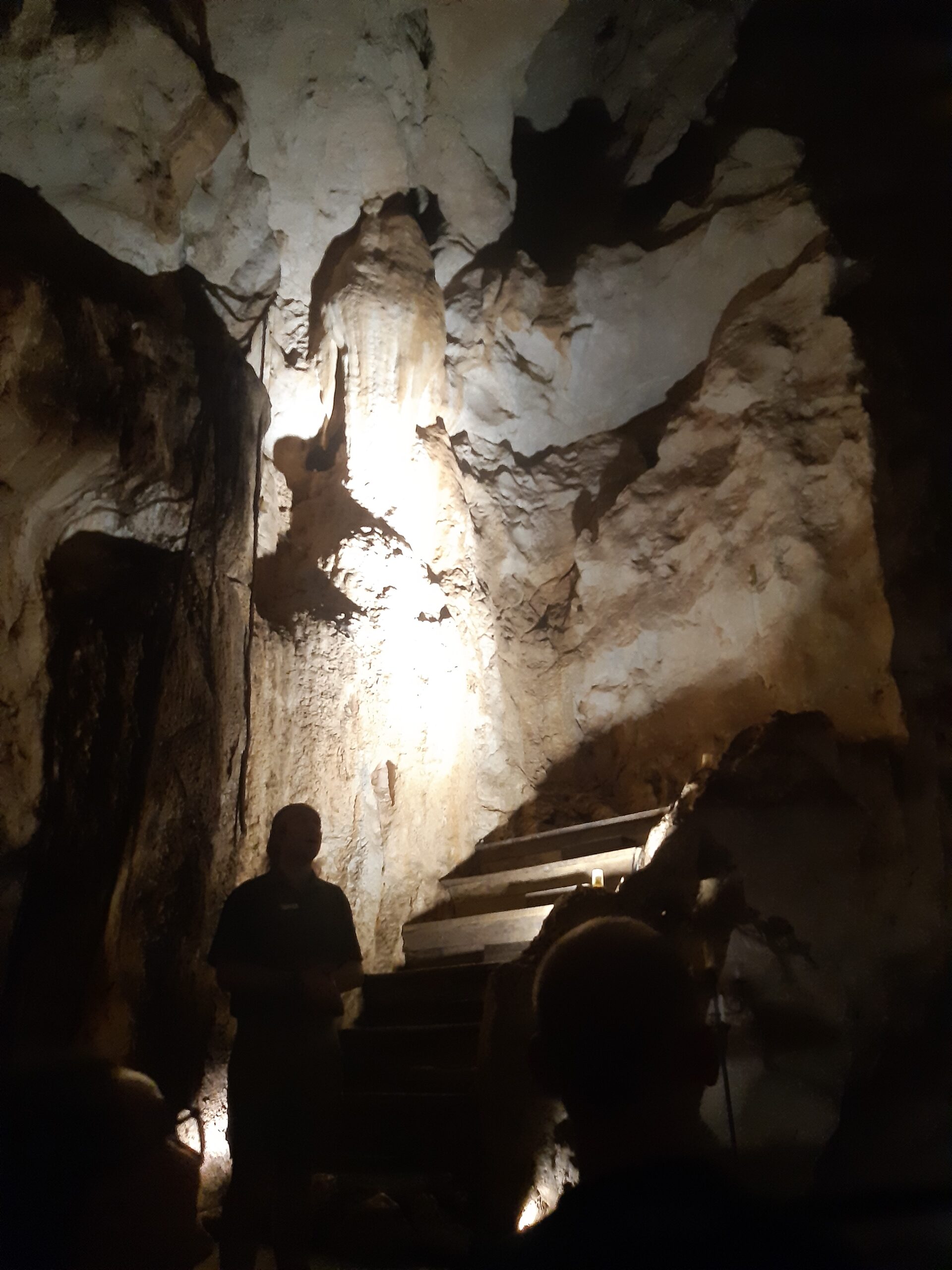 Nous découvrons ensuite les grottes avec des grandes salles très hautes, notamment la « cathédrale ». Dans cette dernière, notre guide va lancer un morceau de musique pour profiter de l’acoustique (presque aussi bonne que celle de l’opéra de Sydney, puis éteindre complètement les lumières : frissons garantis. On traverse ensuite une salle où nichent des milliers de toutes petites chauves-souris : certaines vont sortir de la grotte en nous frôlant, c’est un poil inquiétant, mais une belle expérience.