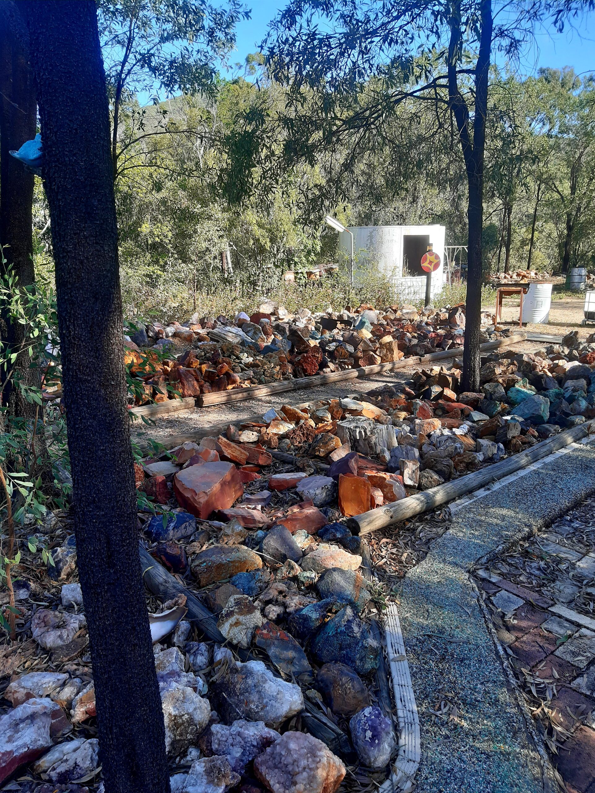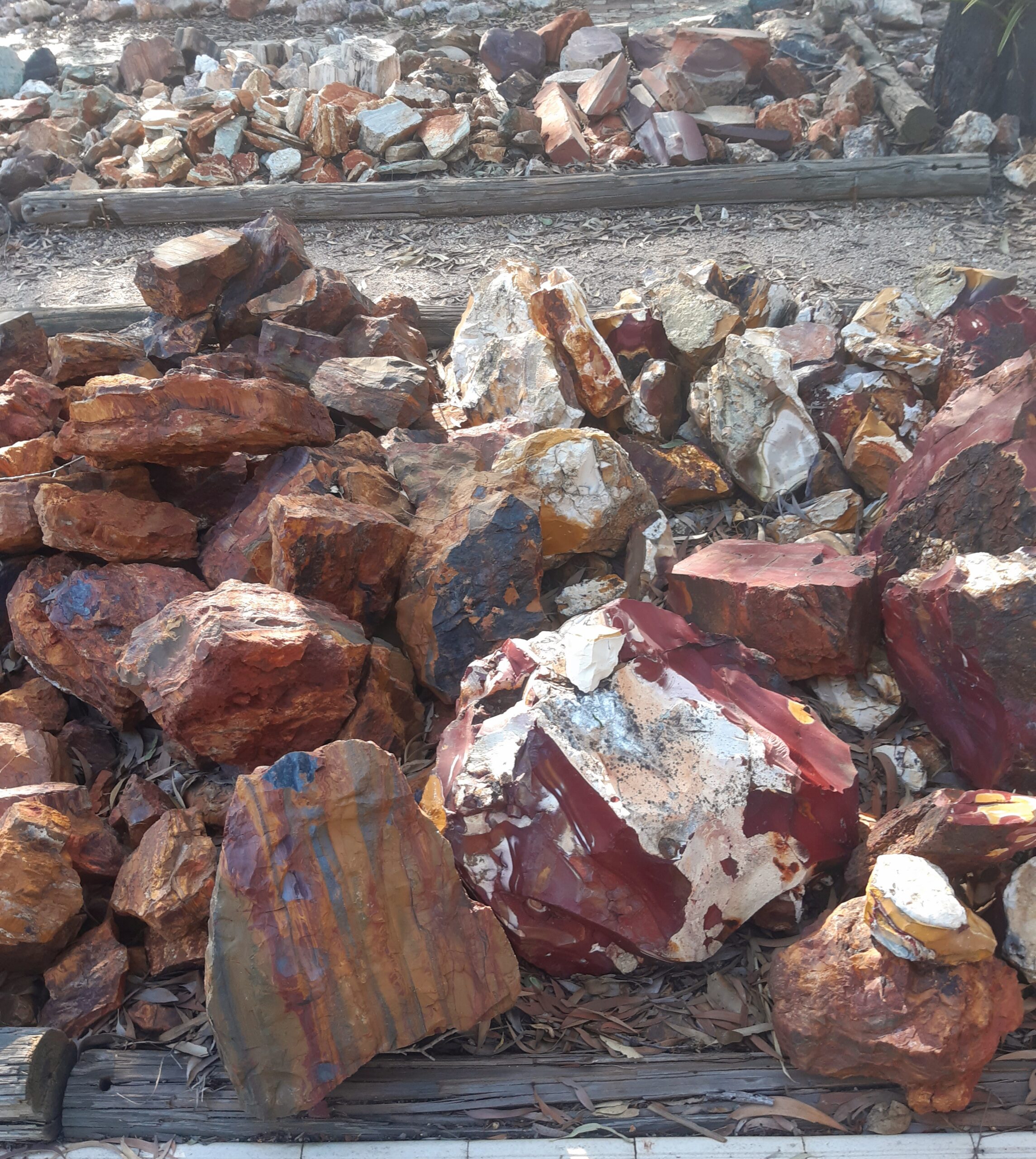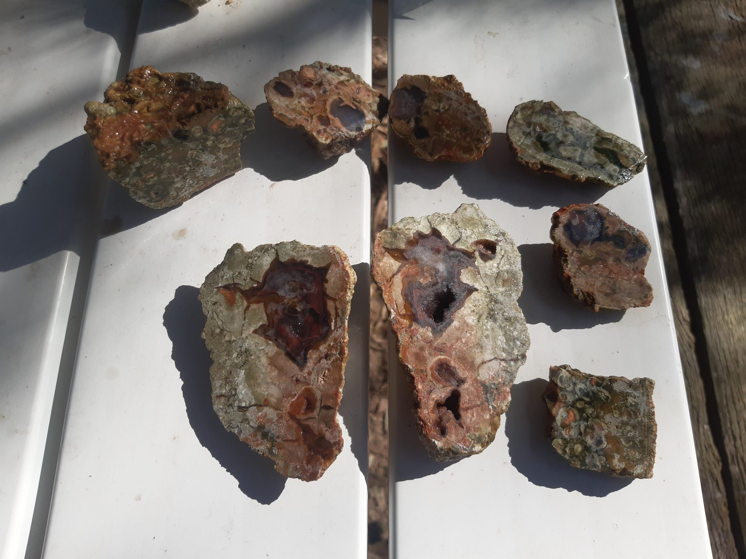 C’est reparti vers le sud, puisque les grottes marquait le point le plus septentrional de notre road trip. En redescendant, on s’arrête pour dormir au Mount Hay, où l’on fera une activité géologie. Ce mont est en effet un ancien volcan, et une entreprise propose de fouiller dans les pierres volcanique pour trouver des « thunderegg » (littéralement des œufs de tonerre) : ce sont des cailloux de taille moyenne, qui ont à peu près la taille d’un œuf. Lorsqu’on les ouvre en deux, on peut voir des veines de lave solidifiée, de plein de couleurs différents. C’est superbe ! On passe donc quelques heures à fouiller dans les cailloux pour essayer d’identifier les bonne pierres, puis les propriétaires les découpent à la scie, et on voit si on a bien pioché. Dans notre cas, la fouille a été bonne : on a récupéré plein de jolis cailloux.