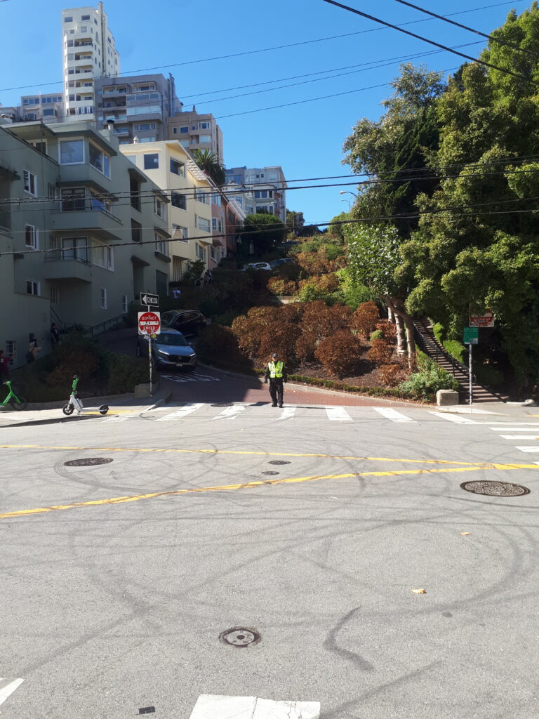 De retour sur la terre ferme, à Pier33, on se dirige vers Pier37 et ses otaries. Ce jour là il n’y en avait qu’une dizaine en train de profiter du soleil. Loin de nos souvenirs auditifs et olfactifs de dizaines d’otaries entassées, mais Maël était tout de même content. On continue notre chemin en direction du « cable car » pour attaquer les hauteurs de San Francisco : arrivés au départ, déception : du fait d’un événément en cours, la Fleet week, le cable car est fermé dans cette zone-là aujourd’hui. On montera donc en bus, jusqu’en haut de Lombard Street, la fameuse rue ultra-pentue avec ses virages en épingle. Là aussi, petite déception : sans ses parterres fleuris (on est en automne, les fleurs sont fanées) ça a moins de charme. Peu importe, direction Chinatown pour notre déjeuner !
