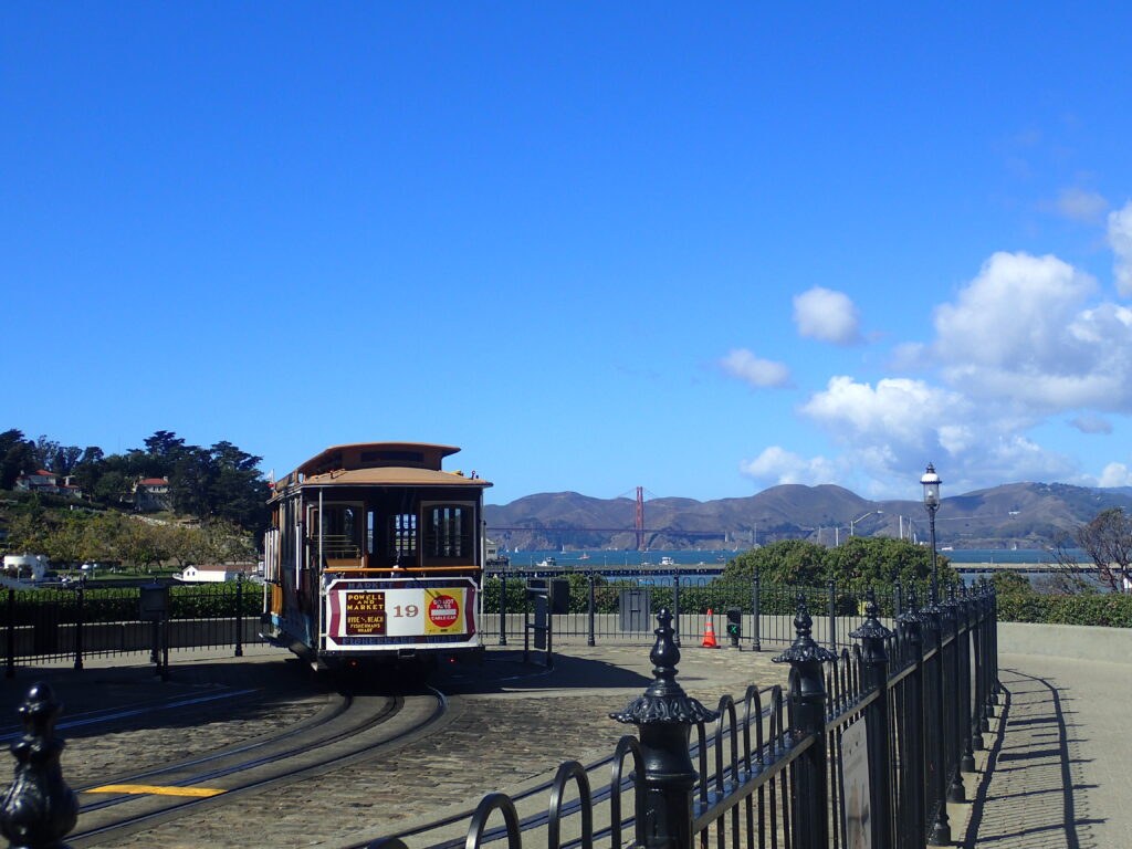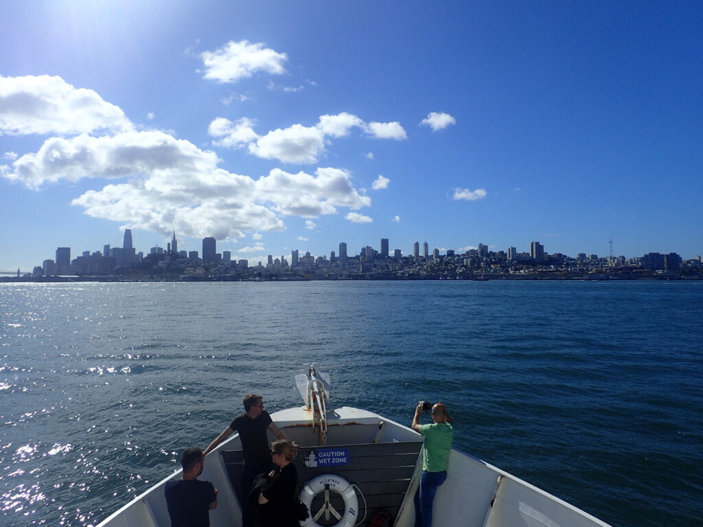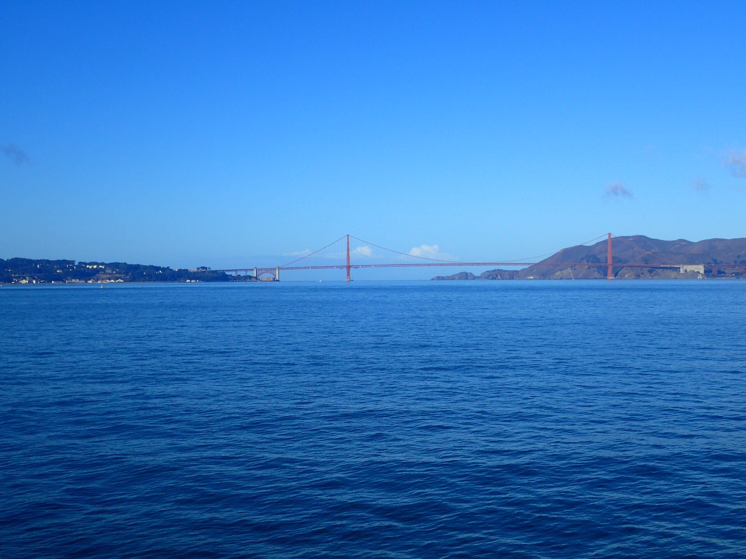Puis départ en ferry pour Alcatraz. L’occasion de faire de superbes photos du Golden gate et de la ville puisque le ciel était bleu, sans nuages. Arrivés sur Alcatraz, on trouve le circuit très bien organisé : on est guidés vers le haut de l’île et le pénitencier, pour y récupérer nos audioguides. Il faut ensuite les lancer à un point donné, et déambuler dans la prison en suivant les indications. Cela étend bien les flux sachant qu’un bateau arrive toutes les 20min, plein de 100 ou 200 personnes.