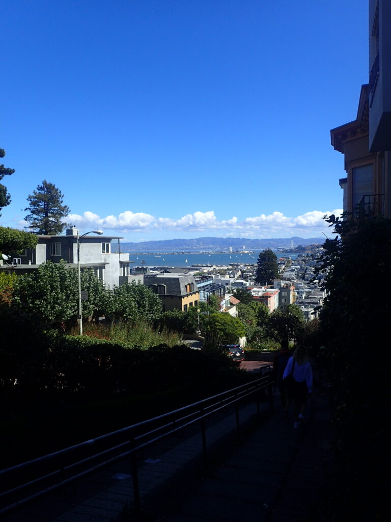 San Francisco vu par Maël : On a vu des otaries, nous avons pris le ferry pour aller voir la prison d’Alcatraz, nous sommes revenus en bateau. Nous sommes allés manger au restaurant. On a pris des voitures qui se conduisaient toutes seules, c’était très impressionnant et on pouvait voir le trajet et voir ce que les voitures « voyaient ». Ensuite nous avons imprimé une image de la rue en zig-zag (Lombard street) sur pièce de 5 cents puis nous avons descendu Lombard street.
